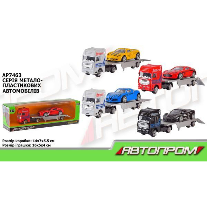 Трейлер металлический с машинкой "АВТОПРОМ", в кор. 25*6*7см..