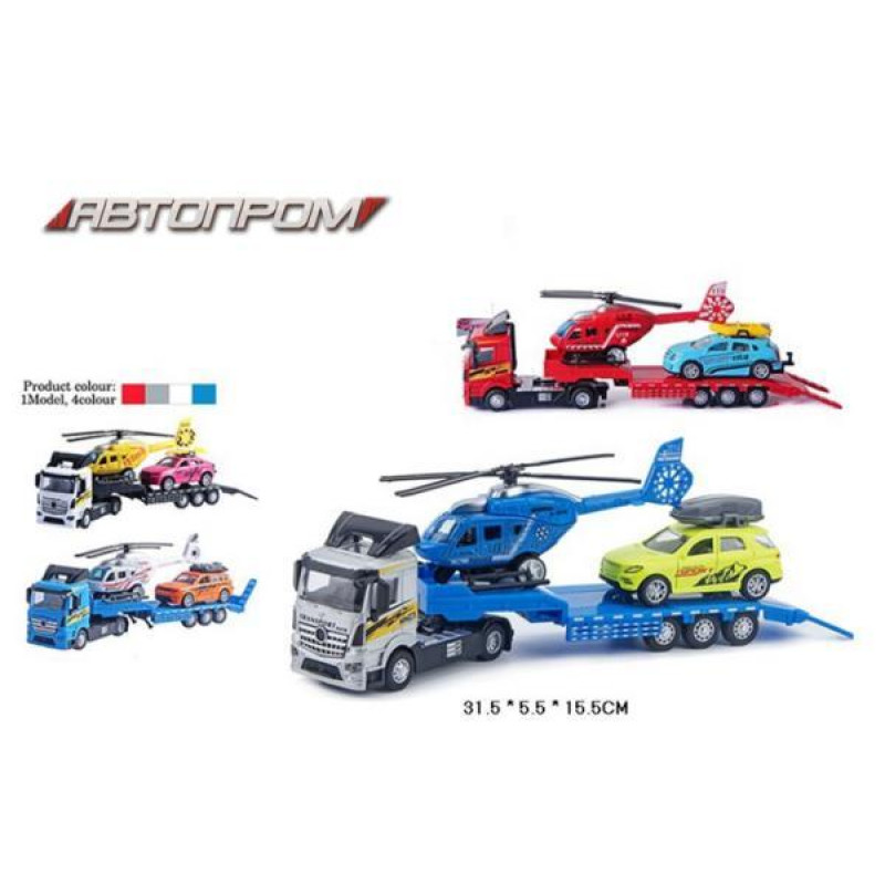 Трейлер мет. АВТОПРОМ вертолет, катер, 4 цвета кабины, в кор. 31,5*15,5*5,5см..