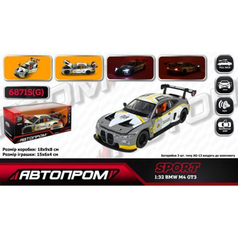 Машина АВТОПРОМ 1:32 «BMW M4 GT3», на батарейках..