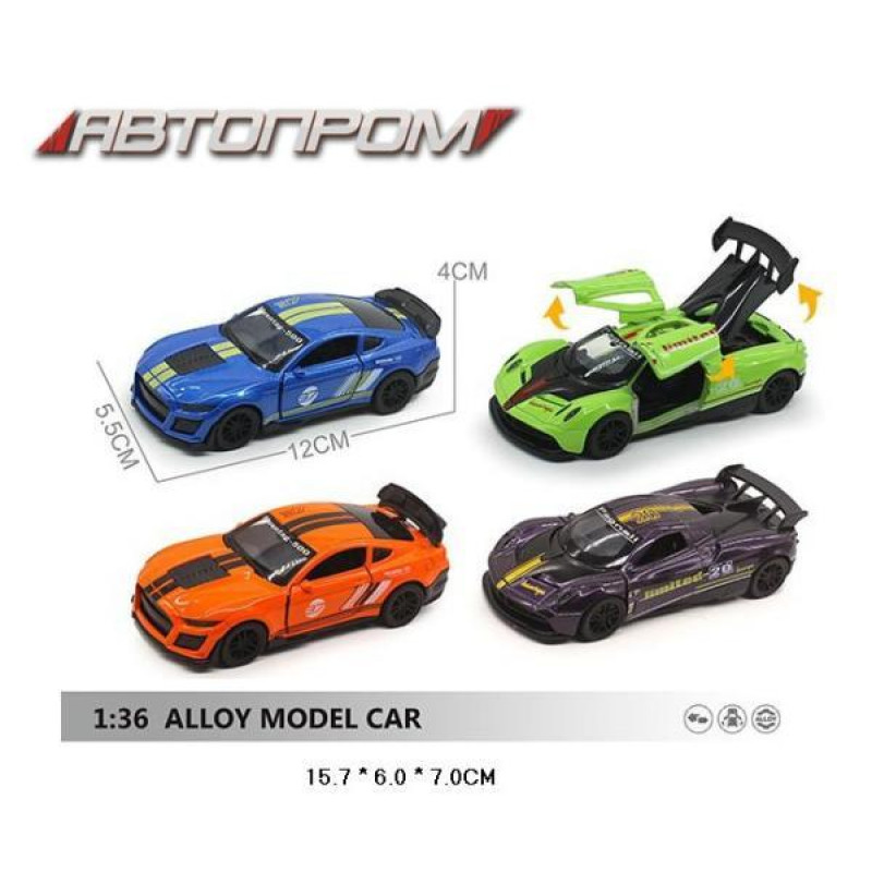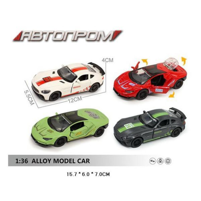 Машина мет. АВТОПРОМ 1:36, 2 вида по 2 цвета, откр.дверь, багажник, в кор. 15,7*6*7см..