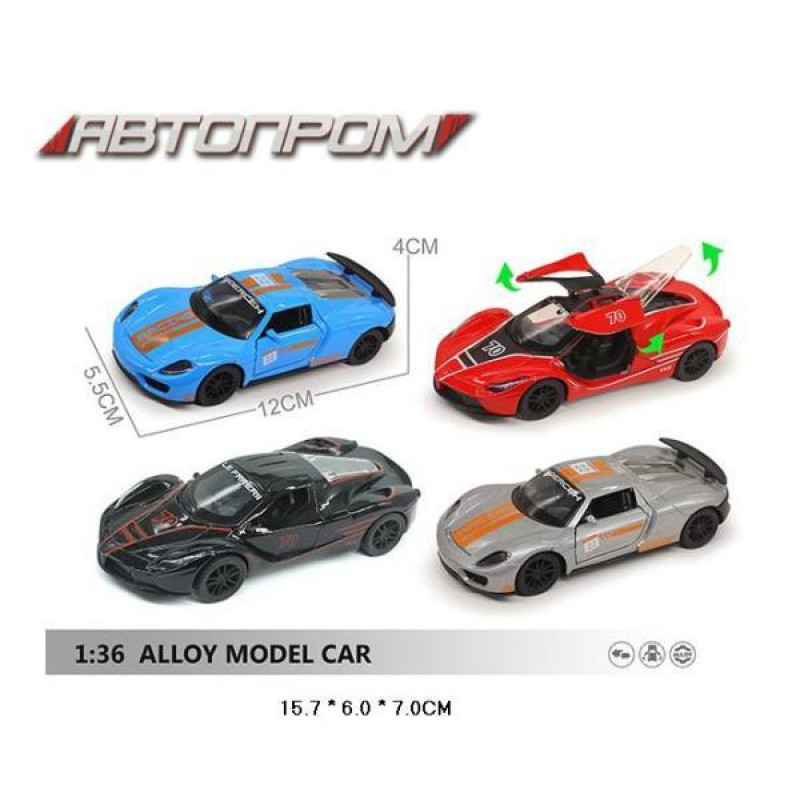 Машина мет. АВТОПРОМ 1:36, 2 вида по 2 цвета, откр. дверь, багажник, в кор. 15,7*6*7см..