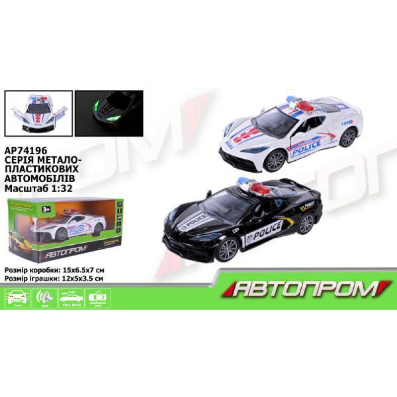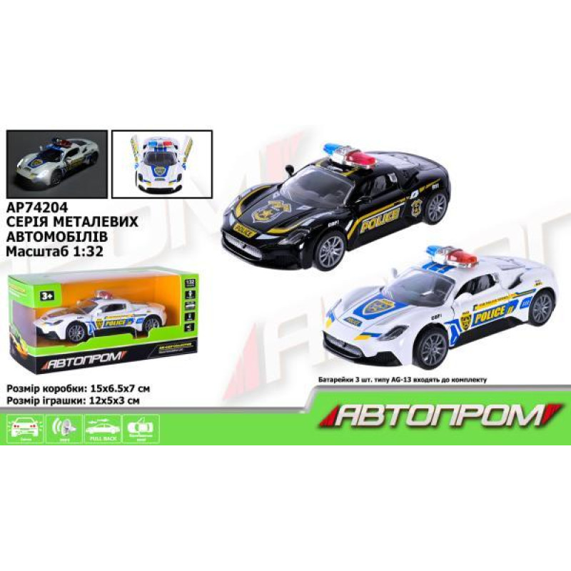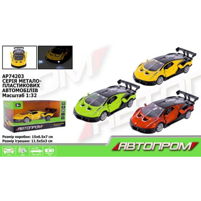 Машина мет. АВТОПРОМ 1:32, 3 цвета, откр.двери, в кор. 16,5*7,5*7,5см, арт: AP74108..