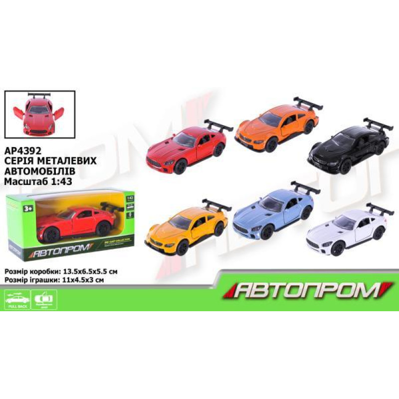 Машина мет. АВТОПРОМ 1:43, 6 цветов, откр.двери, в корр. 13,5*6,5*5,5см , арт: AP4391..