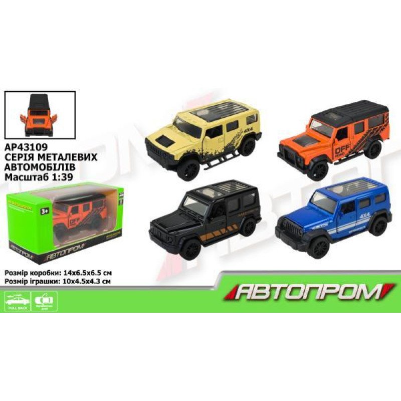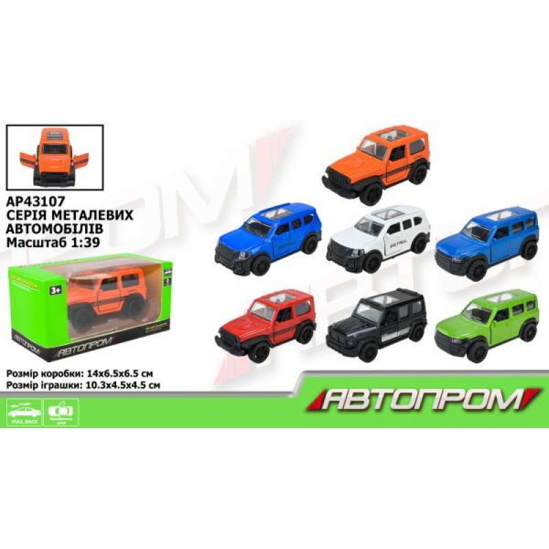 Машина мет. АВТОПРОМ 1:43, 4 цвета, откр.двери, в кор. 14*6*6см арт: AP4393..