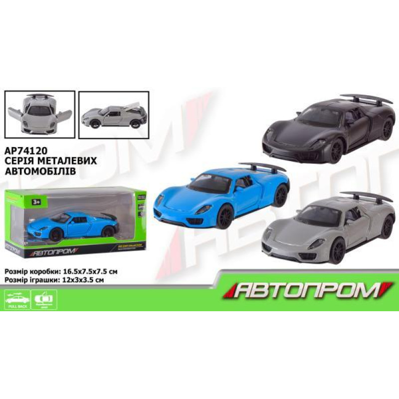 Машина металлическая АВТОПРОМ "Porsche 918" 1:32, 3 цвета, откр.дверь, в кор. 16,5*7,5*7,5см..