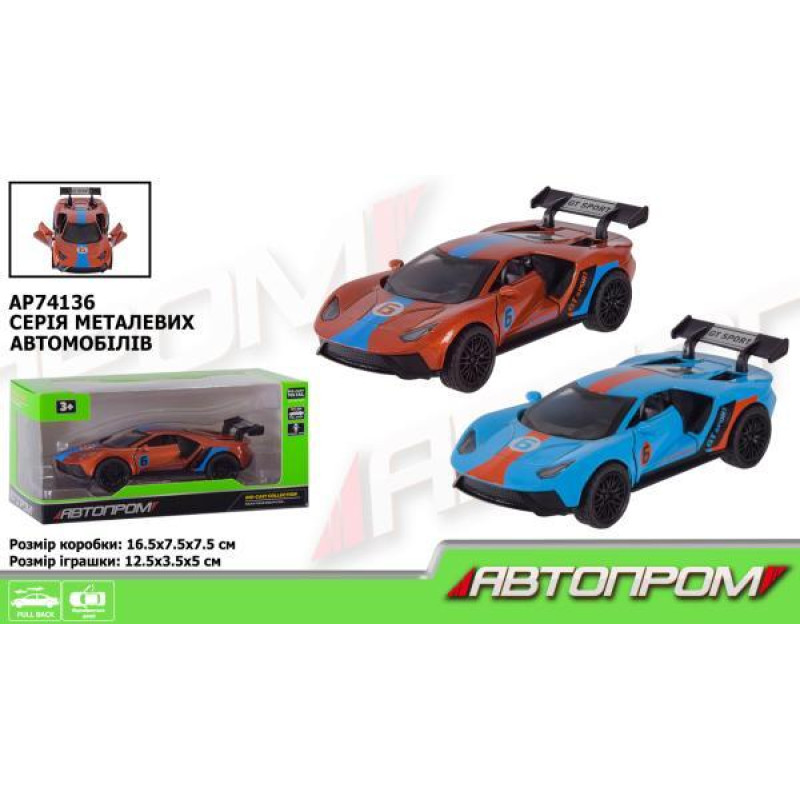 Машина металлическая АВТОПРОМ 1:32, 2 цвета, откр.дверь, багажник, в кор. 16,5*7,5*7,5см, ст.: AP74125..