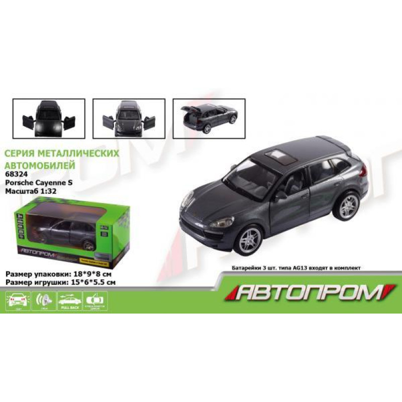 Металлическая машинка - уменьшенная копия настоящего автомобиля. Предназначена для игры в доме и на улице. Для детей старше 3-х лет. Основные характеристики: Машинка металлическая "АВТОПРОМ", 1:32 Porsche Cayenne S, тип питания: на батарейках, свет, звук, открываются двери, упаковка: коробка 18*9*8..