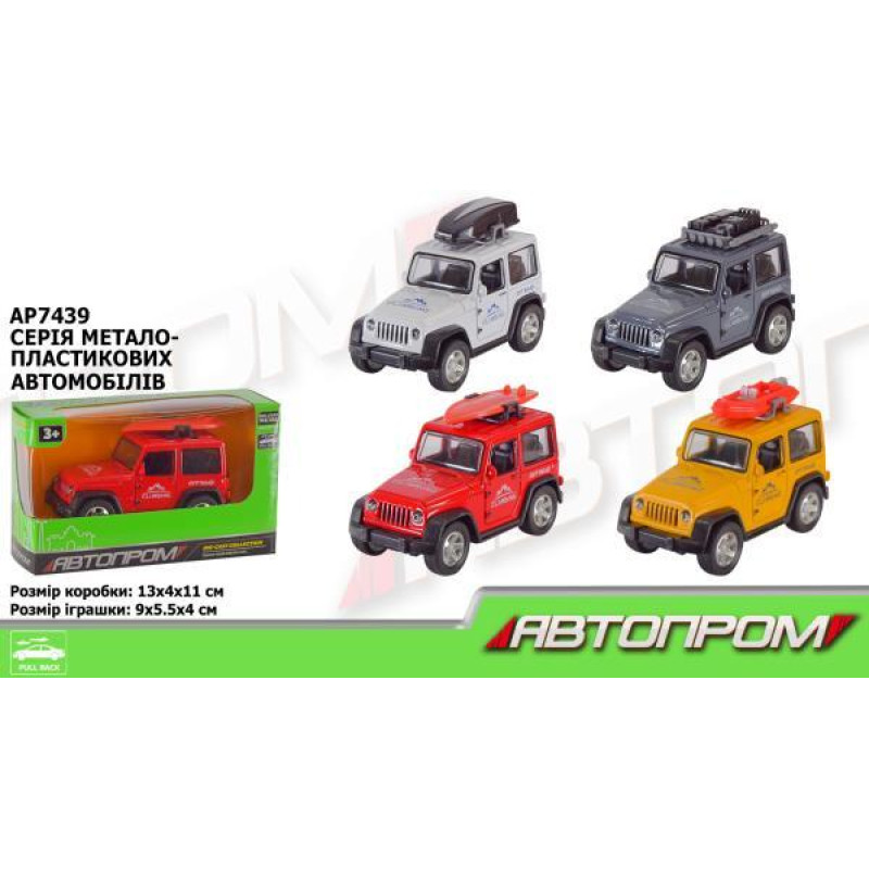 Металлическая машинка - уменьшенная копия настоящего автомобиля. Предназначена для игры в доме и на улице. Для детей старше 3-х лет. Основные характеристики: Машина металлическая "АВТОПРОМ", 2 цвета, 1:32 Jeep Wrangler , тип питания: на батарейках, свет, звук, откр.двери, упаковка: коробка 18*9*8с..