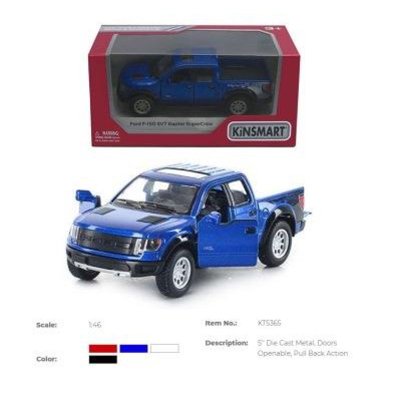 Машина "Kinsmart" FORD F-150 RAPTOR 5'' металл., инерц., откр., дв., 4 цв., в кор. 16*7*8см..