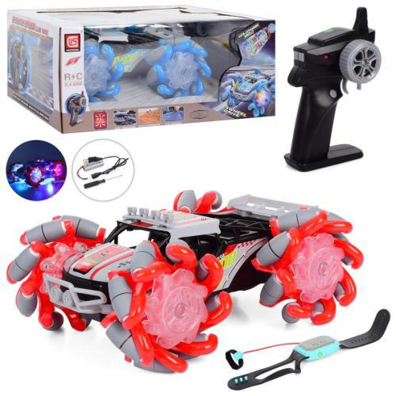 Джип р/у 2,4G, аккумулятор, USB зар, 21см, звук, свет, трансформ.колеса, управление жестами, 2 цвета, в кор. 31*13,5*20см арт: CV-A500-2