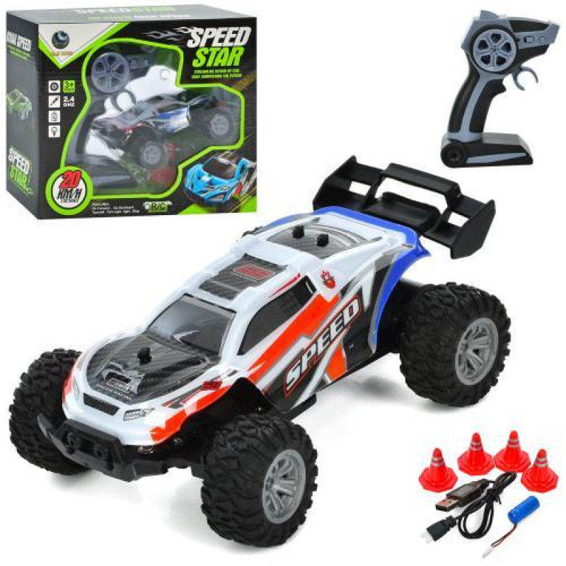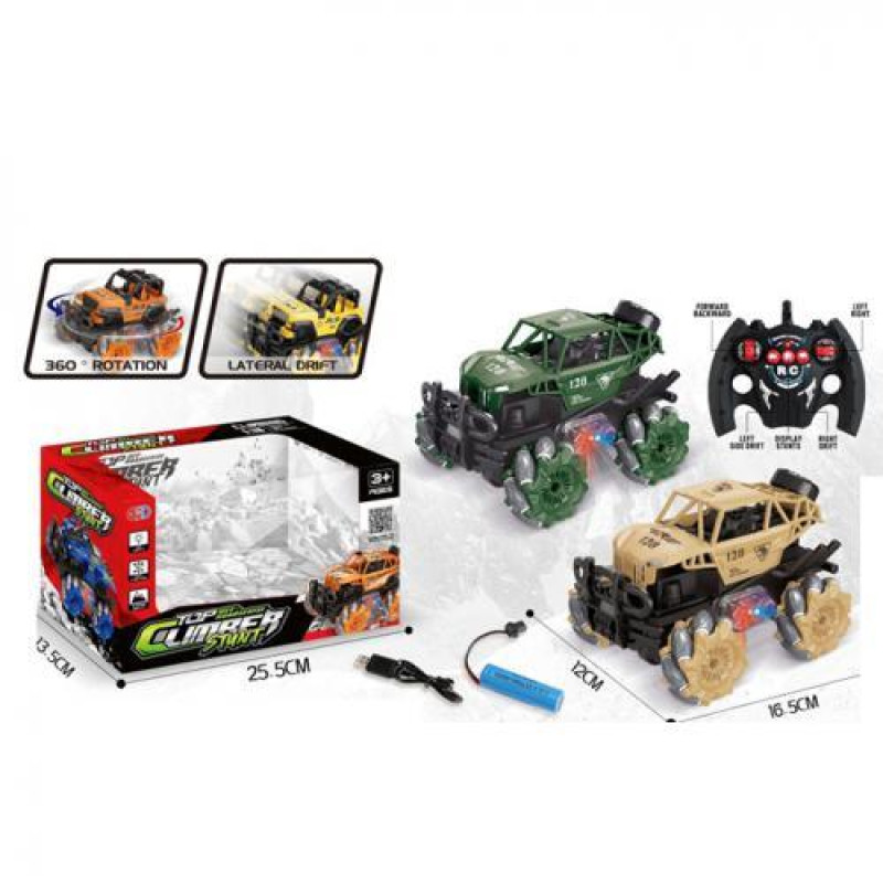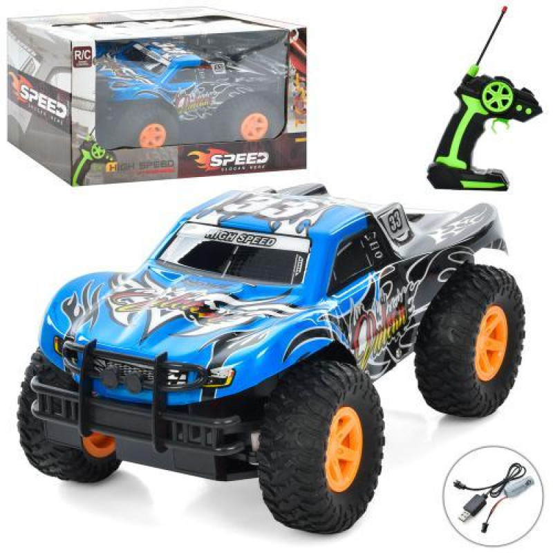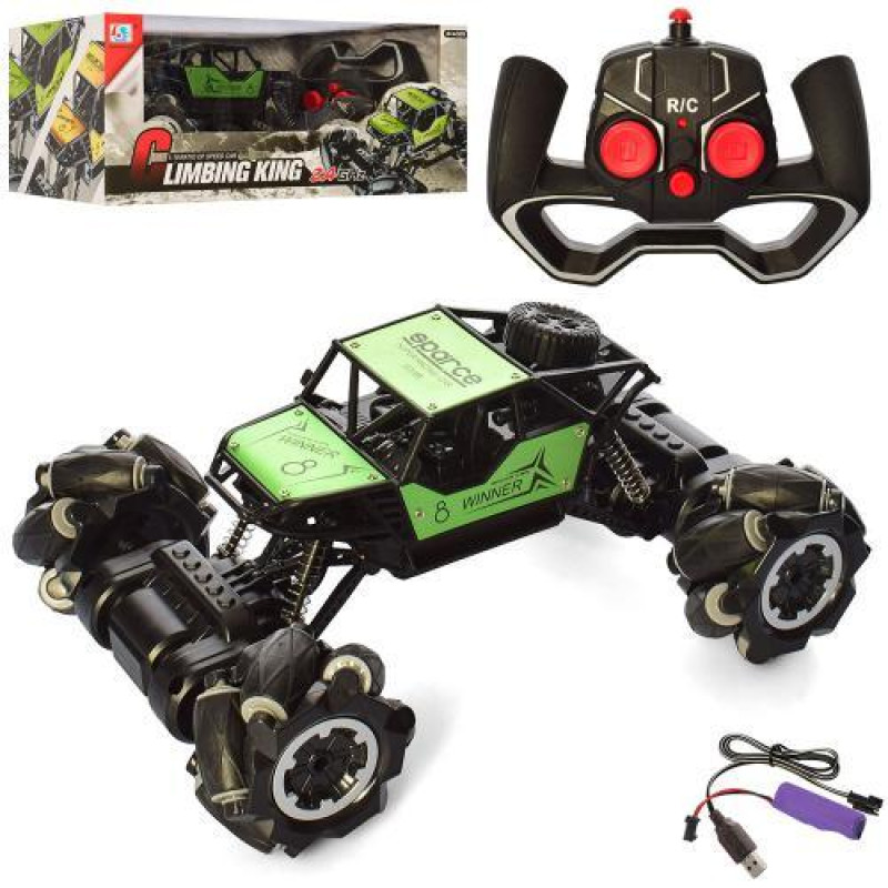 Машина р/у 2,4G, аккумулятор, 28см, свет, корпус не бьется, резиновые колеса, доп.колеса, амортизатор, 4х4, USBзарядное, 2цвета, в кор. 30,5*24,5*15см ..