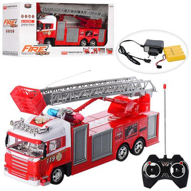 Пожарная машина р/у, аккумулятор, муз., свет, резиновые колеса, в кор. 43,5*18,5*12см