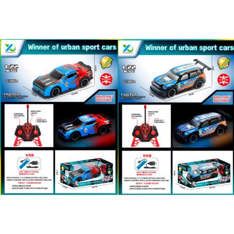 Машина р/у, аккум, 18см, 1:22, свет, корпус не бьющийся, резиновые колеса, USBзарядное, в кор. 26,5*12*12,5см