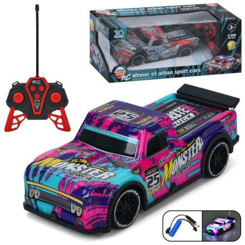 Машина р/у, аккум, 19см, 1:22, свет, корпус не бьется, резиновые колеса, USBзарядное, 2 цвета, в кор.26,5*12*12,5см
