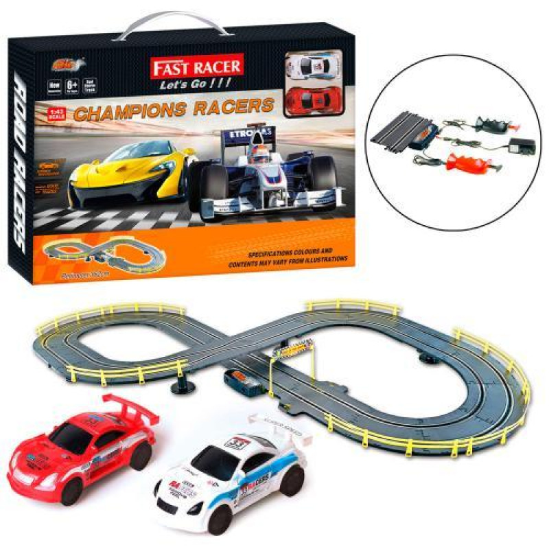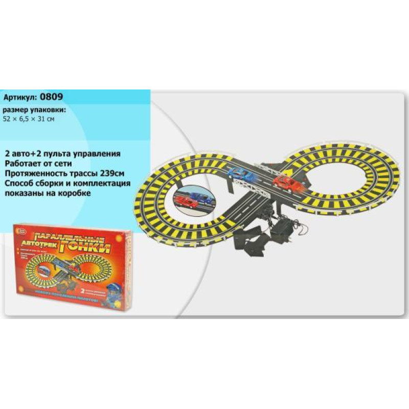 Игрушка для сюжетно-ролевых игр ребенка Трек р/у аккум. PLAY SMART "Параллельные гонки" от сети 220V, длина трассы 495см, упаковка: коробка 50*34*7 см ..