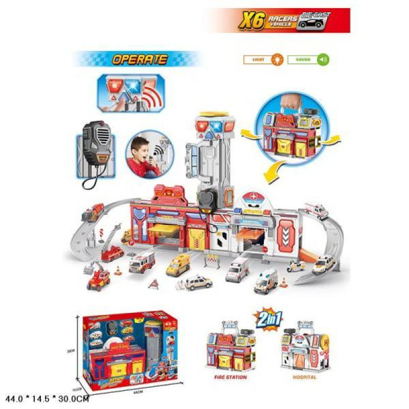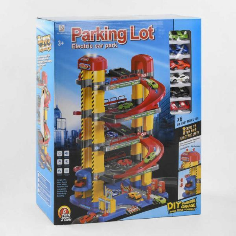 Парковка 5 этажей, автоматический подъёмник со светом и звуком, 6 машинок, кольцевая трасса, в кор. 60*49*15см