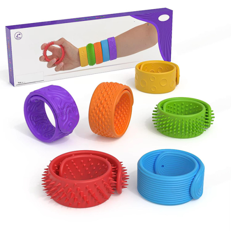 Антистресс-браслеты «Текстура» — это набор силиконовых сенсорных браслетов с разной поверхностью, разработанных для успокоения, снижения тревожности и развития тактильного восприятия. Они идеально подходят как для детей, так и для взрослых, которые ищут компактное средство для саморегуляции и релаксации.