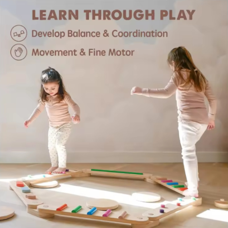 С помощью набора балансировочных досок в стиле Монтессори дети смогут развивать баланс, координацию, мелкую моторику и просто весело и с пользой проводить время дома, на площадке или в детском центре. Можно собрать дорожку длинной до 3,6 м.