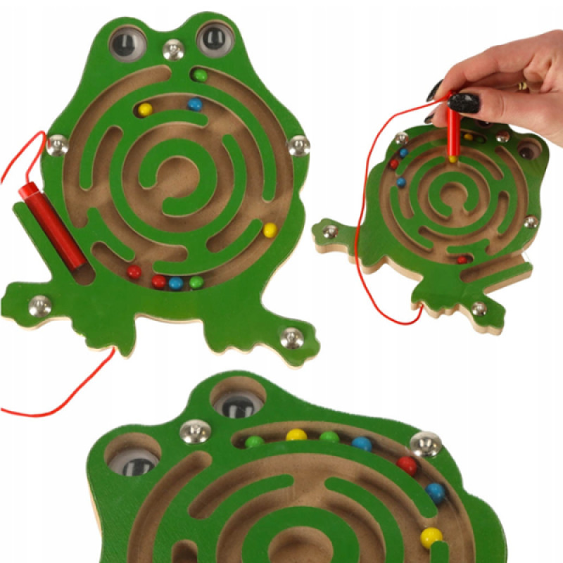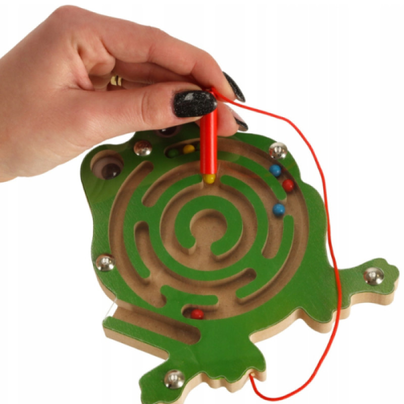 Эта яркая мини-игра в форме лягушки превращает обучение в увлекательное занятие! С помощью магнитной палочки ребенок перемещает цветные шарики по лабиринту, тренируя внимание, координацию и мелкую моторику. Компактная, прочная и безопасная — идеально подходит как для дома, так и для путешествий. Игрушка может надолго занять ребенка.