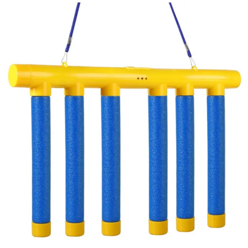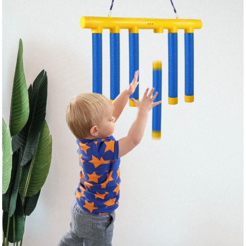 Описание и принцип работы:Игрушка представляет собой набор из шести мягких палочек, подвешенных на перекладине. Палочки крепятся к перекладине легкими магнитами, таким образом они легко могут открепляться и падать. На перекладине есть кнопки включения/выключения и регулировки уровней игры, что делает её увлекательной и доступной для ребенка. Игрушку можно установить в любом помещении или на открытом воздухе, подвесив на удобной высоте.