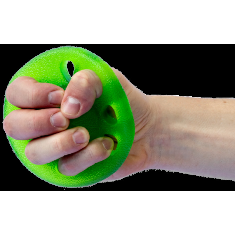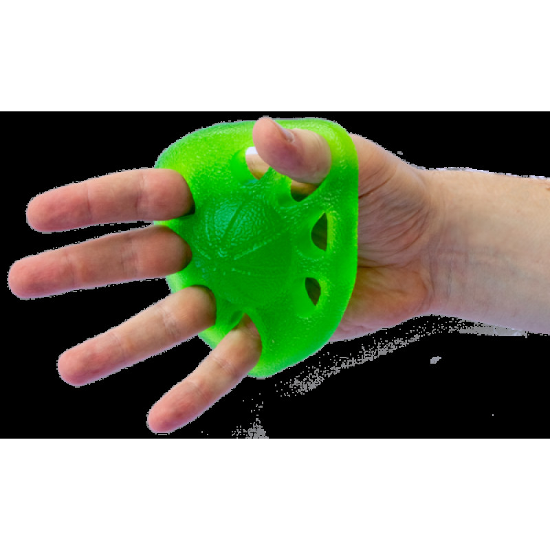Использовать тренажер очень просто - нужно продеть пальцы одной руки в отверстия, сжимать силиконовый шарик и разжимать кисть, преодолевая сопротивление. Можно также растягивать эспандер двумя руками. Таким образом, прорабатываются разные группы мышц.
