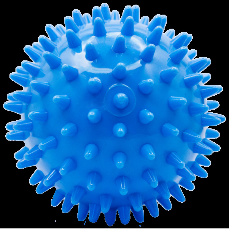 - стимуляция моторики и усиление кровоснабжения участков тела, на которые воздействует мяч с шипами.