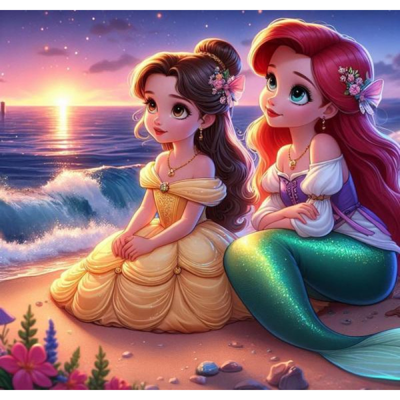 Алмазная мозаика «Две принцессы», 20*20см, на рамке..