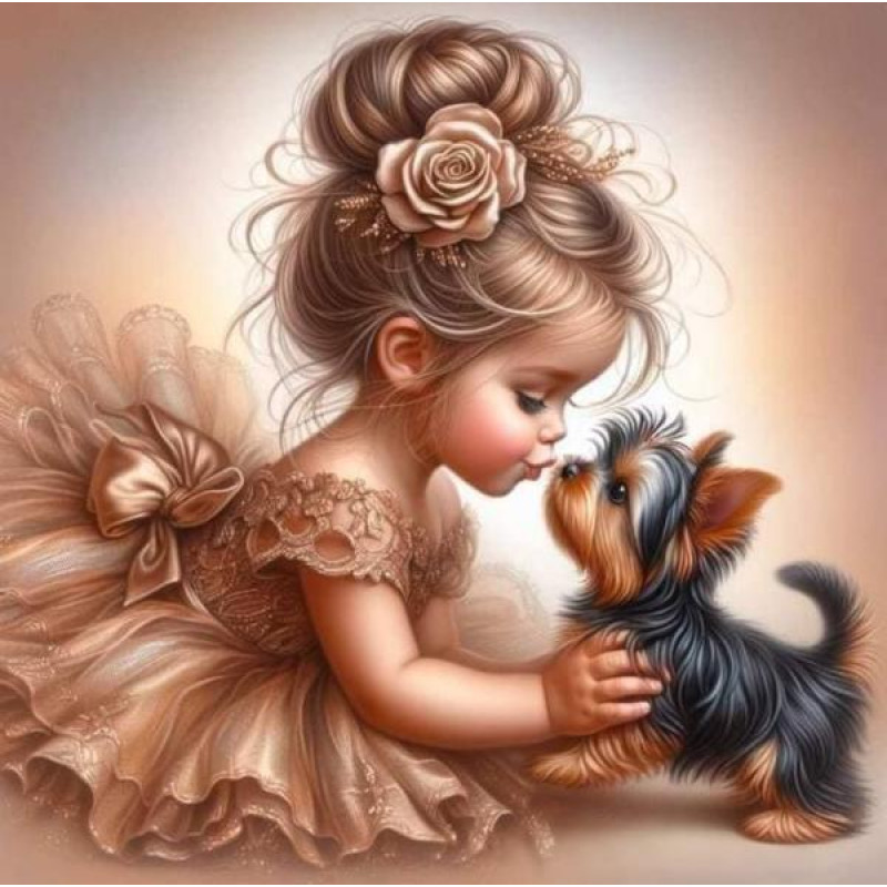 Алмазная мозаика «Девочка и щенок», 20*20см, на рамке..