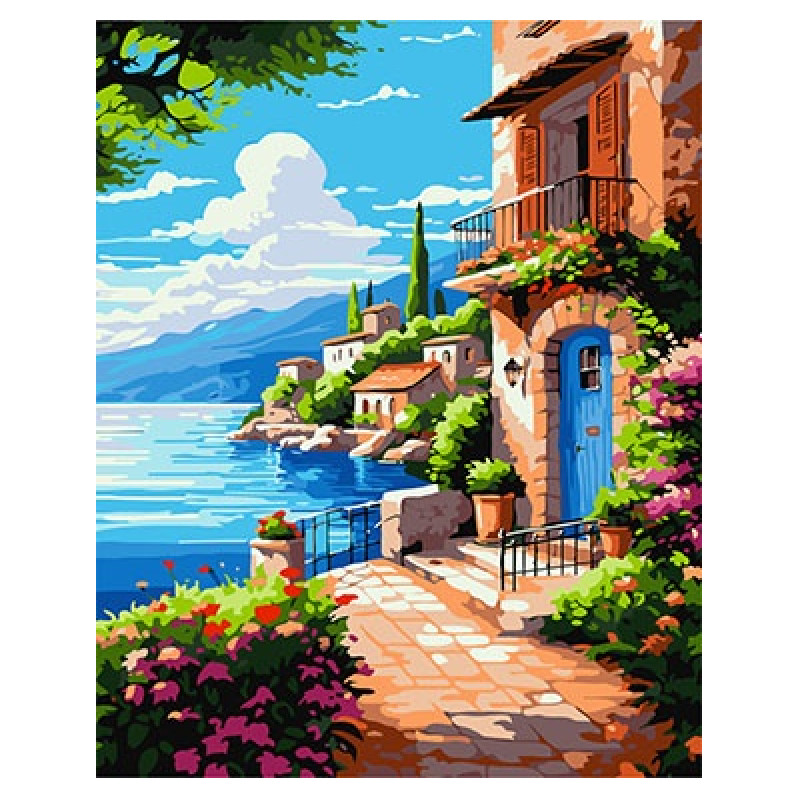 Набор для росписи на холсте Картина по номерам Пейзаж. Солнечная Ривьера, 40х50см, в термопакете, Artissimo (PN5515). Комплектация: Холст на подрамнике, Акриловые краски, Кисточки разной толщины, Контрольный лист, Крепление. Количество цветов: от 25 до 36. Уровень сложности: 4. Упаковка: в термопаке..