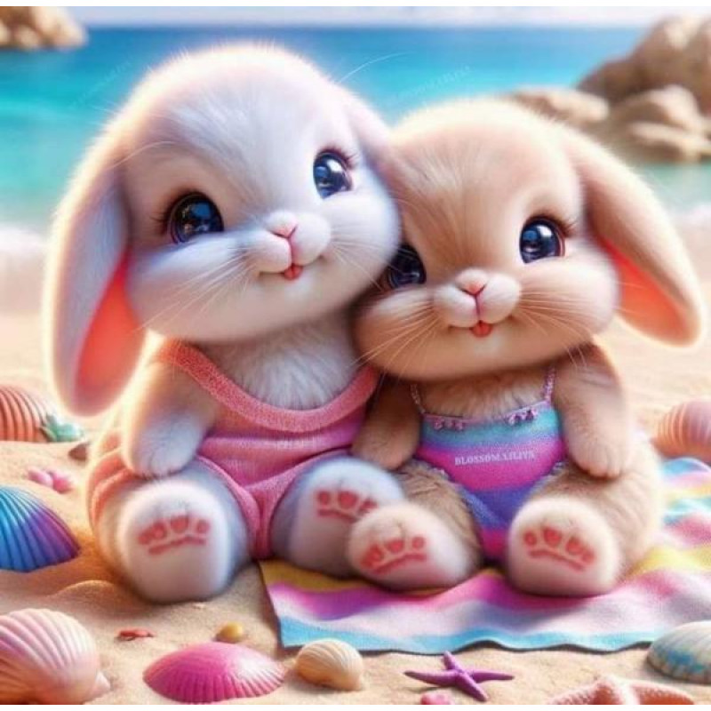 Алмазная мозаика "Зайки на пляже", 20*20см, на рамке, в кор. 21*21*2,5см, ТМ Dreamtoys
