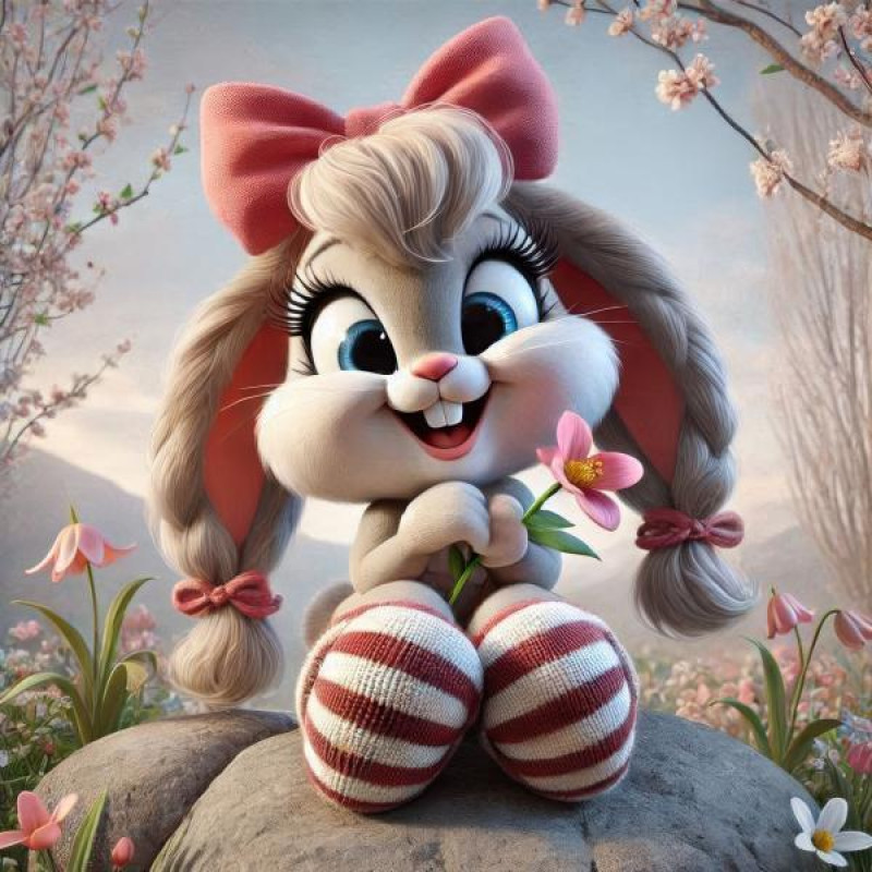 Алмазная мозаика «Зайка с цветком» – набор для творчества, который подарит радостные минуты детям и взрослым. На картине изображена стильная зайка с длинными косичками, которая сидит на камешке и обеими руками радостно держит цветок. Её грациозный образ и весёлые цвета создают ощущение радости и теп..