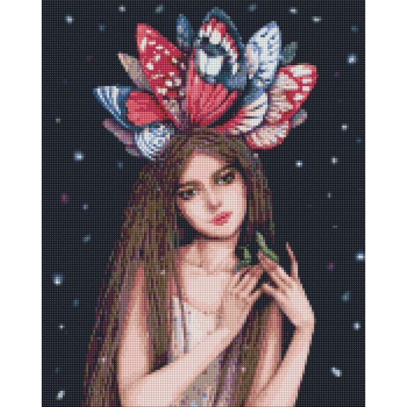 Набор для творчества вышивка камнями Алмазная мозаика Люди, Цветы. Краски бабочек, 40х50см, холст на подрамнике, Идейка (AMO7265). Комплектация: Полотно с липкий слоем на подрамнике, специальная ручка-стилус для работы со стразами, гель-клей, камни, цветовая схема. Тип камней: круглые. Закладка: По..