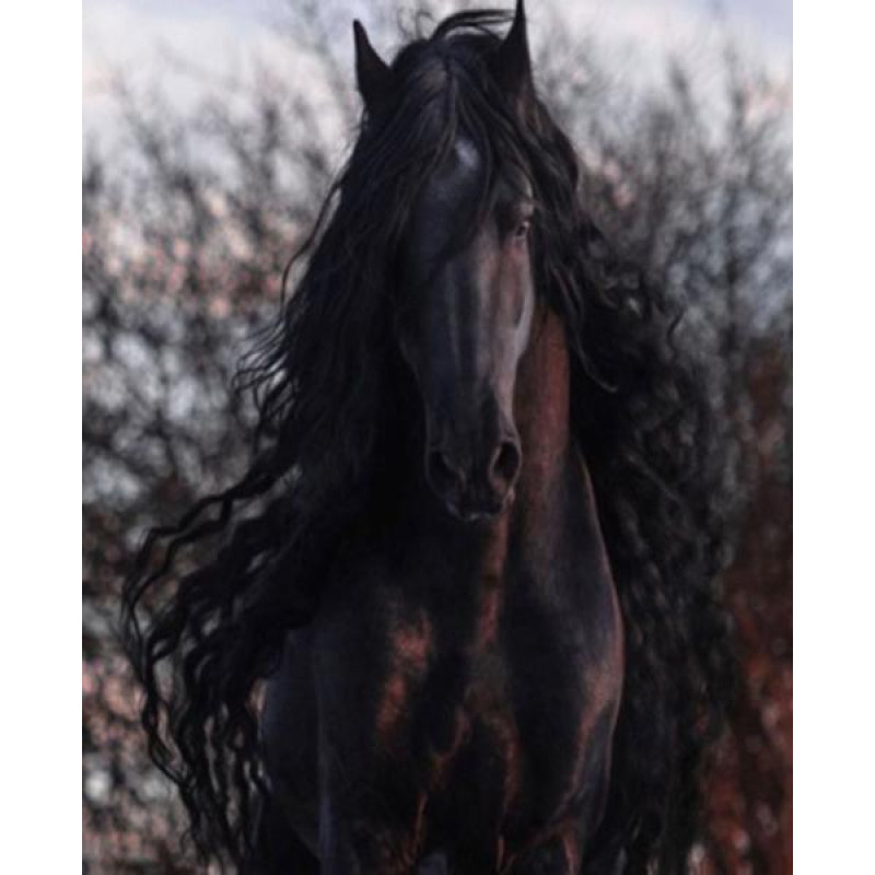 Набор для творчества вышивка камнями Алмазная мозаика Животные. Фризский жеребец, 30х40см, холст на подрамнике, Dreamtoys (Y0101). Комплектация: Полотно с липкий слоем на подрамнике, специальная ручка-стилус для работы со стразами, гель-клей, камни, цветовая схема. Тип камней: круглые. Закладка: По..