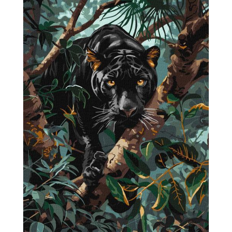 Картина по номерам Животные. Грациозная пантера, с красками металлик, 40х50см, в термопакете, Идейка (KHO6619)