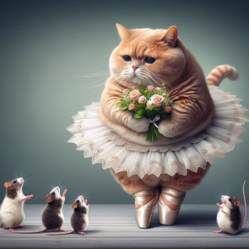 Алмазная мозаика «Цветы от поклонников» – набор для творчества, который подарит радость и весёлые моменты детям и взрослым. На картине изображен пухленький котик в образе балерины на пуантах, который принимает цветы от своих поклонников – мышей. Сдержанные цвета и игривый сюжет создают весёлую и пра..