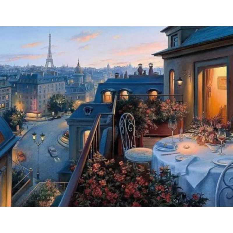 Алмазная мозаика по номерам 30*40 "Вид на Париж" карт уп. (холст на раме)