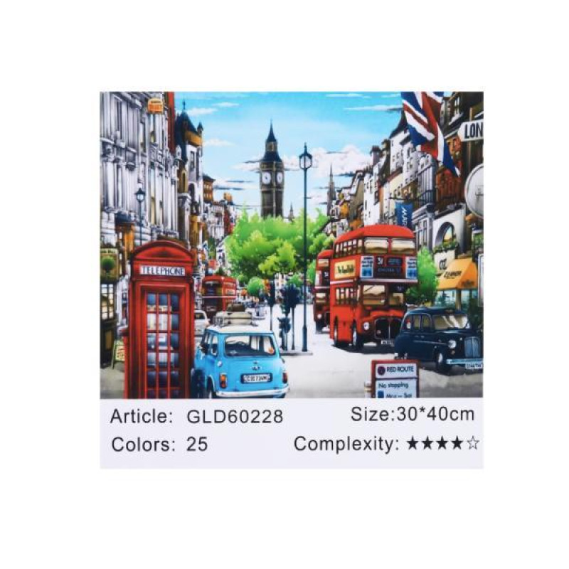 Алмазная мозаика по номерам 30*40 "Улицы Лондона" карт уп. (холст на раме)