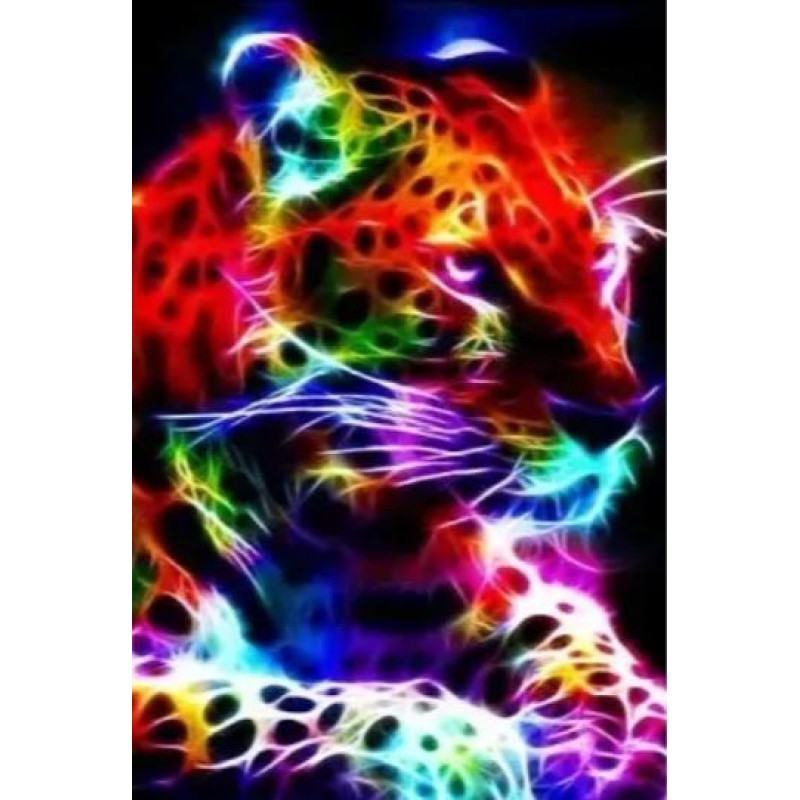 Алмазная мозаика по номерам 30*40 "Цветной леопард" карт уп. (холст на раме)