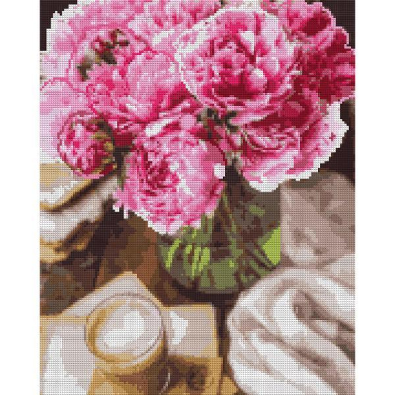 Погрузитесь в атмосферу вдохновения и творчества с алмазной мозаикой Пионы и утро ТМ SANTI!