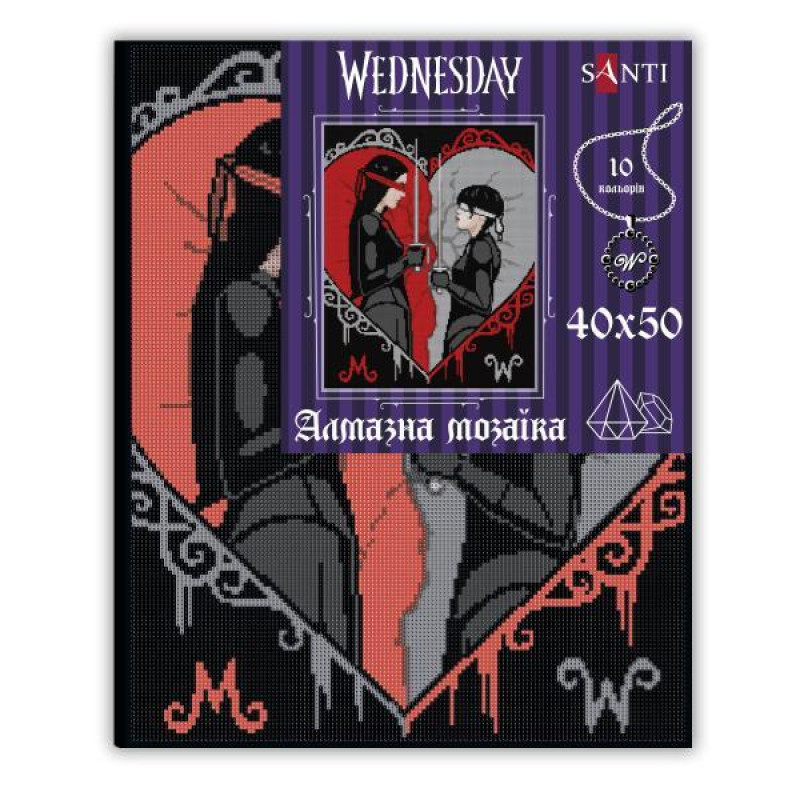 Погрузитесь в таинственный и загадочный мир с алмазной мозаикой Wednesday. Duelo a ciegas ТМ SANTI! Алмазная мозаика – творчество не требующее специальных навыков и опыта, простая и занимательная техника, которую без труда освоит каждый. Отлично подходит как для детей, подростков и взрослых. Увлекательный процесс выкладывания алмазных страз действует как арт-терапия, помогая снять стресс, улучшить концентрацию внимания и развить усидчивость.
