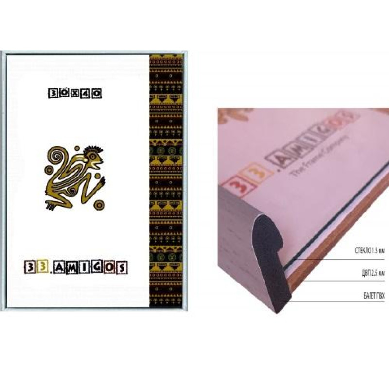 Рамка для алмазной мозаики и фото, 30*40см, стекло 2мм, ДВП 2,5мм, багет ПВХ, серебряный, 33.Amigos, Украина