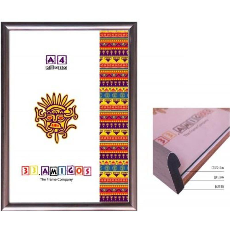 » Рамка для фото, 21*30, стекло 1,5мм, ДВП 2,5мм, багет ПВХ, серебряный, 33.Amigos, Украина
