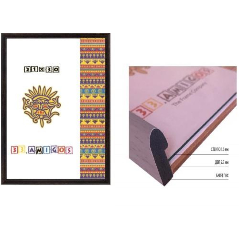 » Рамка для фото, 21*30, стекло 1,5мм, ДВП 2,5мм, багет ПВХ, темно-коричневый, 33.Amigos, Украина