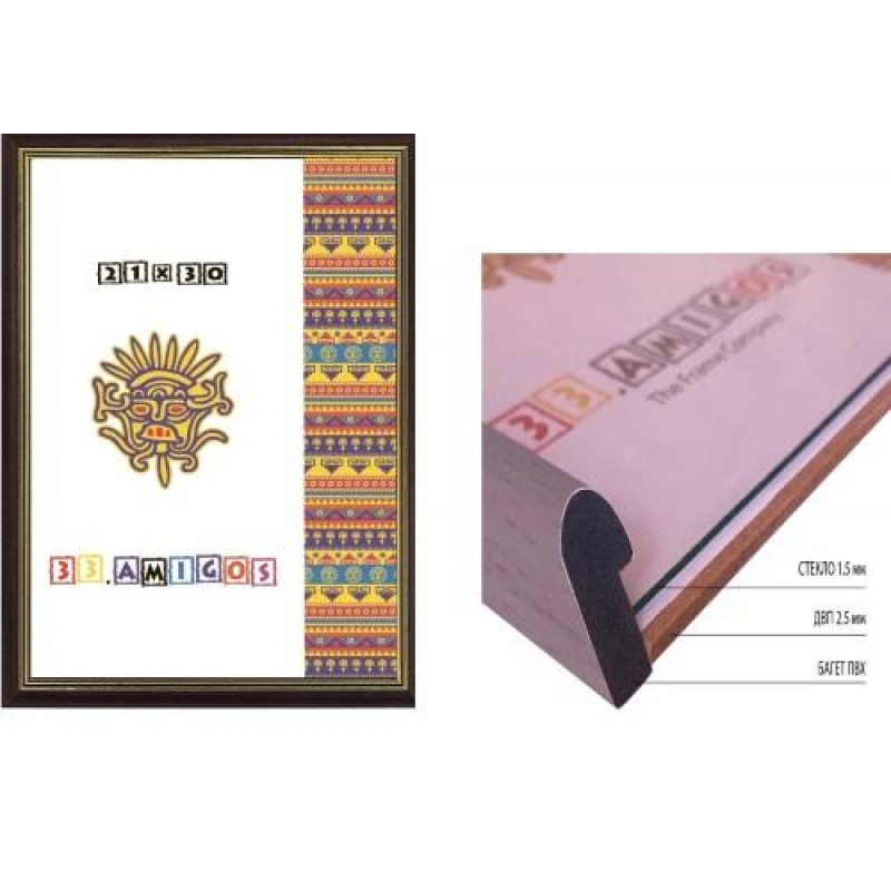 » Рамка для фото, 21*30, стекло 1,5мм, ДВП 2,5мм, багет ПВХ, темно-коричневый с золотом, 33.Amigos, Украина