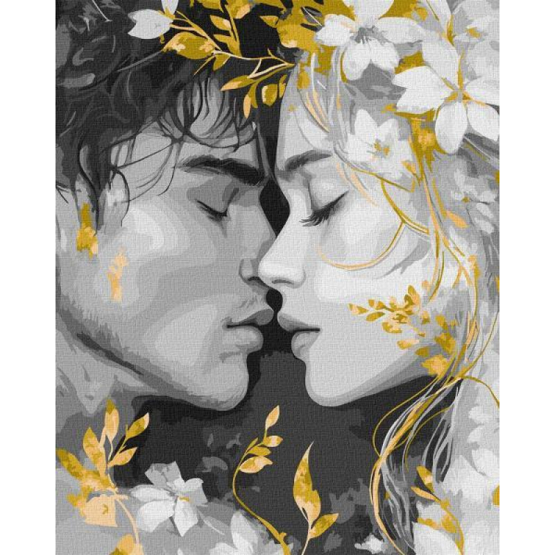 Набір для розпису по номерах "Поцілунок під дощем з фарбами металiк" 40х50см