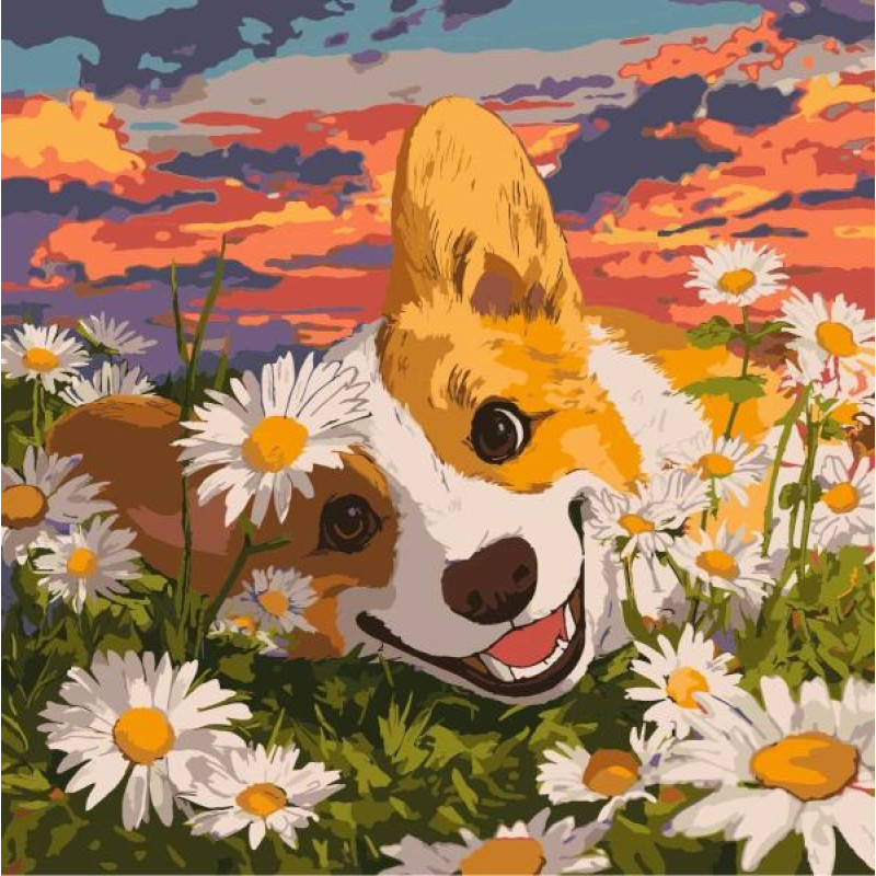 Набір для розпису по номерах "Коргі в ромашках" 40х40см