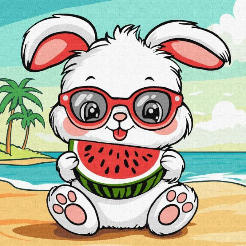 Набір для розпису по номерах для дітей "Літо. Зайчик з кавуном" 25х25см