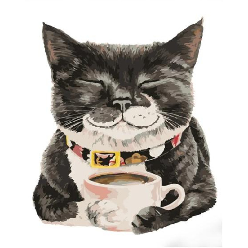 Картина по номерам Животные. Котик и чашечка, с лаком, 30х40см, в термопакете, Strateg (SS6793-mt)