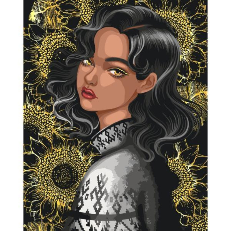 Картина по номерам Люди. Воинственная женщина, 40х40см, в термопакете, Strateg (SK031-mt)