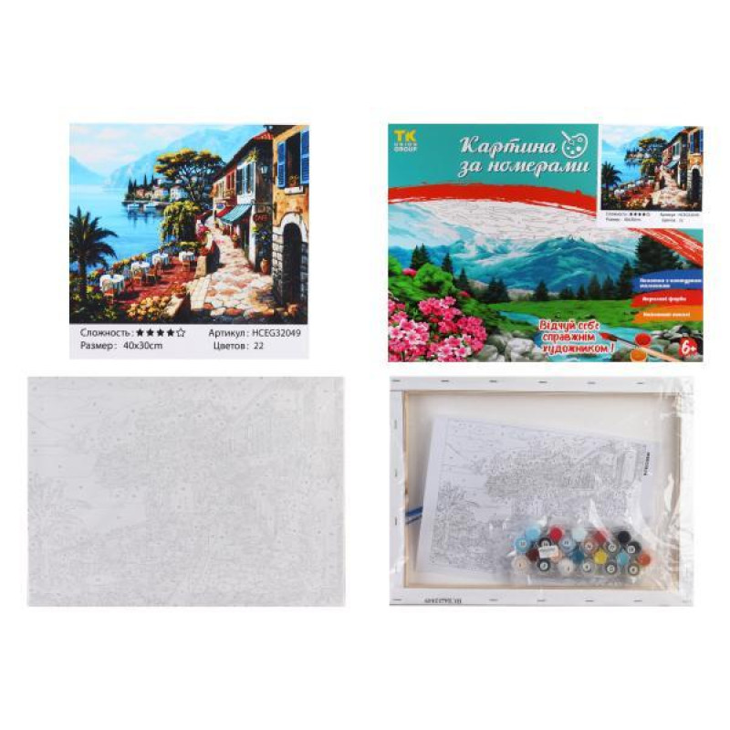 Набор для росписи на холсте Картина по номерам МИКС. , 30х40см, в коробке, TK Group (32022-mt). Комплектация: Холст на подрамнике, Акриловые краски, Кисточки разной толщины, Контрольный лист, Крепление. Количество цветов: 20-36. Уровень сложности:. Упаковка: в коробке. Страна-производитель товара: К..